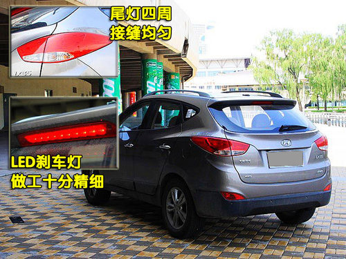 北京現(xiàn)代ix35使美學的部分得到最大發(fā)揮。收緊的側面以及流線型的造型營造出濃郁的前衛(wèi)運動風格。造型獨特的LED尾燈和掀背型擾流板設計,使得從尾部開起來更加豐滿,更急動感。尾燈及后行李箱的接縫同樣十分均勻,整體做工做到了前后一致。