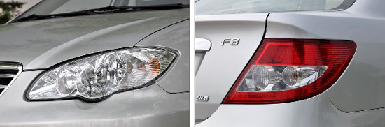 外形方面,比亞迪F3是“山寨花冠”是盡人皆知的事情。不過為了不至于“太過分”,比亞迪在花冠的基礎(chǔ)上還是進行了一些修改的,例如大燈造型與花冠不同,尾部設(shè)計差別則更大。在過去,兩款車之間感官差別還是有的,除了車標不同以外,由于這些細節(jié)上的差異,讓人感覺花冠更原汁原味,而比亞迪一看就是“山寨車”。