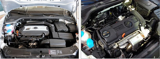 采用了渦輪增壓技術與缸內直噴技術的1.8TSI發(fā)動機(左)1.4TSI發(fā)動機(右)
