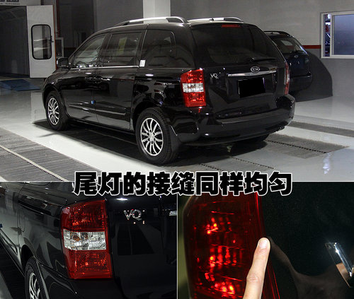 與車頭部分相同,2011款VQ威客的車尾部分以及大燈周圍的接縫同樣均勻,整體做工做到了“前后一致”,后行李廂與尾燈接縫處的縫隙也比較均勻,體現(xiàn)出韓系車所具有的細(xì)膩。車身板金縫隙十分均勻,漆面光潔度不錯(cuò)。