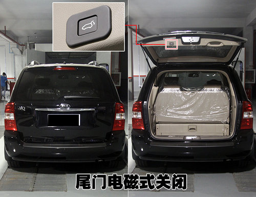 起亞2011款VQ威客的尾門為電子助力機(jī)械鎖式開啟,開啟把手為隱藏式雙氣壓桿支撐。開啟/關(guān)閉的力度適中。關(guān)閉車門時(shí),消費(fèi)者可通過(guò)車門的按鍵關(guān)閉尾門。