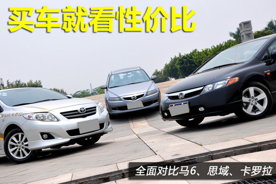 買車就看性價(jià)比!相信大部分消費(fèi)者都是這樣想。何謂性價(jià)比,顧名思義就是性能、配置和空間等綜合起來之后與售價(jià)的比,便宜的不見得性價(jià)比一定高,貴的只要物有所值,同樣可以做到高性價(jià)比。今天我們來對(duì)比一下馬自達(dá)6、思域和卡羅拉3款車型,它們之間的差價(jià)并不大,僅為1萬元左右,屬于同價(jià)位車型,可以來個(gè)橫向?qū)Ρ。我們將從多個(gè)角度來對(duì)比這3款車型,看誰性價(jià)比最高。