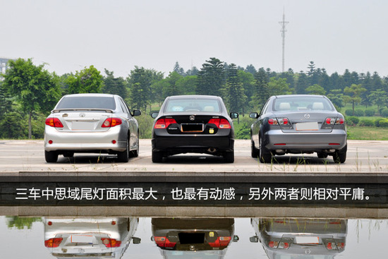 三車中思域尾燈面積最大,也最有動(dòng)感,另外兩者則相對(duì)平庸。細(xì)心的朋友會(huì)看到,馬自達(dá)6的排氣管為雙出式,這讓發(fā)動(dòng)機(jī)高速運(yùn)轉(zhuǎn)時(shí)排氣更加暢順,表現(xiàn)自然更加出色。