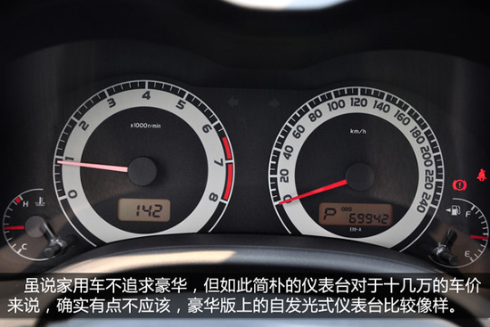 雖說家用車不追求豪華,但如此簡樸的儀表臺對于十幾萬的車價來說確實有點不應該。很有過度節(jié)約成本的感覺。豪華版車型上的自發(fā)光式儀表臺造型與效果都要好很多,但代價就是更貴的價格,性價比不高。