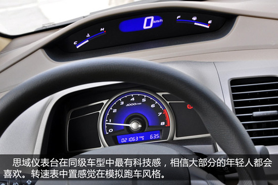 思域儀表臺在同級車型中最后科技感,相信大部分年輕人都會喜歡。轉速表中置設計感覺在模擬跑車風格,或者說是模仿。但或許剛接觸此次的時候需要時間去適應此設計。