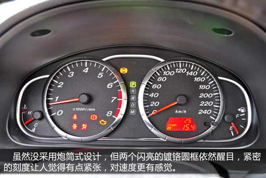 雖然沒有采用炮筒式的設計,但相隔閃亮的鍍鉻圓框依然醒目,緊密的刻度讓人有點緊張,對速度更有感覺,始終堅持轎跑風格。