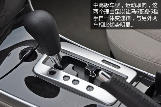中高級車型,運動取向,這兩個理由足以讓馬自達6配備5檔手自一體變速器。成本、性能都高于另外兩款車型。馬自達6向來口碑都是比較省油的,這與變速器優(yōu)秀的表現(xiàn)是分不開的。