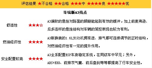 像舊款的奇瑞A3一樣,新A3的駕駛依然保持了輕便省力的特點(diǎn),無論是低速,還是高速行駛,都很輕松,這一點(diǎn)對于生活在擁擠城市中的車主們來說顯得尤為重要。