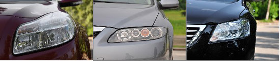 三款車的前大燈均有各自的特色,君威和馬自達6更偏向運動,而凱美瑞則顯得比較中庸樸素。不過三款車均沒有配氙氣大燈。