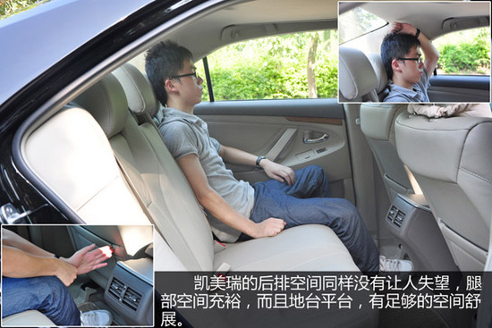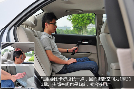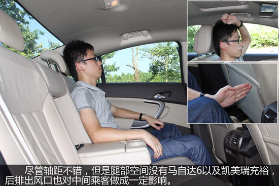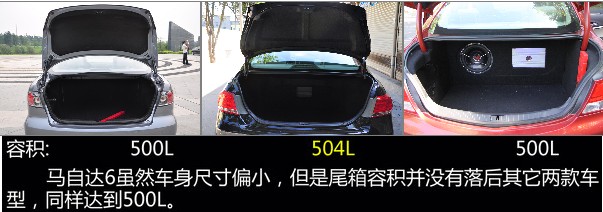 三款車的空間對比,凱美瑞的后排空間表現(xiàn)最為出色,由于后排地板平坦,所以擁有較為出色的腿部空間。另外值得一提的是馬自達6盡管沒有君威的軸距長,但是后排腿部空間實際要比君威好,也沒有受到前排手枕的影響。