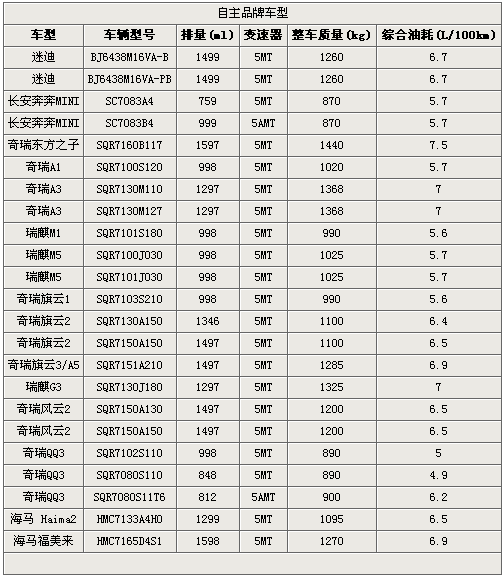 在自主品牌目錄中,完全沒有前兩個(gè)陣營(yíng)中慘烈廝殺,成一邊倒局面,霸主就是奇瑞品牌。光是入選的車型就有11種,款型更是達(dá)到了17款,要知道自主品牌第二批名單一共才有23款車型。零星殘存的勢(shì)力分別由北汽、長(zhǎng)安以及海馬三個(gè)品牌占據(jù),其他品牌沒有動(dòng)作。
