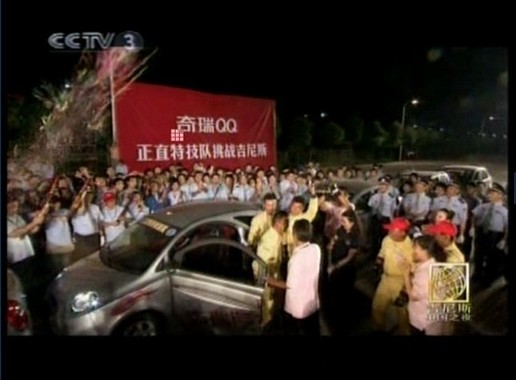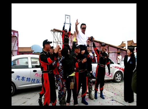 本次奇瑞QQ特技表演車隊——山東正直車隊,他們是兩項吉尼斯紀錄的保持者——“最小距離汽車漂移入位”和“兩輪行駛通過最窄限寬門”吉尼斯世界紀錄保持者、世界吉尼斯紀錄的締造者。