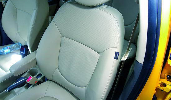 與在展臺上高高在上且在美輪美奐燈光映襯下的VERNA不同,處在自然環(huán)境和光線下的瑞納感覺更加真實自然。除了黑、白、銀、金這些“大眾”車身顏色外,瑞納所特有的炫麗黃、寶石藍(lán)和魅惑紅則帶給了我不少驚喜,這些高飽和度的色彩似乎更加符合瑞納靈動時尚的氣質(zhì)。而運(yùn)動化的前后保險杠配合車頂流暢的弧線、車身側(cè)面凌厲的棱線、蓄施待發(fā)的“X”形前臉與尾部上翹的短鴨尾這些動感元素都帶給了瑞納不少的跑味,按時下流行的說法這是轎跑設(shè)計。雖然是一款三廂小車,但和諧的車身比例與動感時尚的用心設(shè)計也著實能讓瑞納給人留下相當(dāng)不錯的第一印象。
