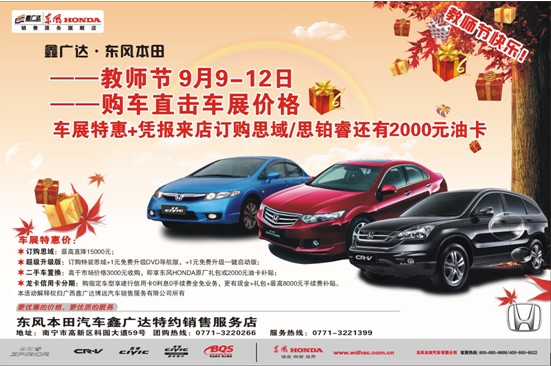 特別的日子來鑫廣達(dá)東風(fēng)本田訂車即能享受最優(yōu)惠的車展特惠價(jià)