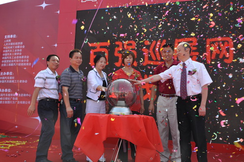 開幕儀式后,組委會(huì)舉行了“全國車主總動(dòng)員,低碳生活愛家園”倡議簽名活動(dòng)及“百強(qiáng)巡展網(wǎng)”上線儀式。出席開幕儀式的嘉賓和參展經(jīng)銷商共同在“全國車主總動(dòng)員,低碳生活愛家園”倡議簽名牌上簽名,以示對低碳汽車生活的支持和響應(yīng)。中國汽車新聞工作者協(xié)會(huì)常務(wù)副理事長兼秘書長、百強(qiáng)巡展系列活動(dòng)組委會(huì)副主任李元?jiǎng)倥c中共赤峰市委宣傳部副部長郭維新,會(huì)同汽車廠家、經(jīng)銷商和消費(fèi)者的代表共同啟動(dòng)了“百強(qiáng)巡展網(wǎng)”上線按鈕。