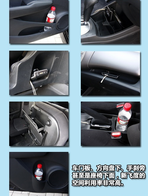 除了上面做展示的這些,飛度將能夠利用的空間全部利用起來,車門內(nèi)側(cè),方向盤下面,手剎兩側(cè)甚至是后排座椅下面都設(shè)計了儲物空間,對于小型車來說,這么豐富的空間非常出色,基本上只有想不到,沒有利用不到的地方。相對而言,瑪馳在可能受限于成本等因素,除了手套箱勉強還和飛度有一拼外,其它儲物方面均處于劣勢,這并不代表瑪馳有多么的差,也許只能說明飛度實在太強了。