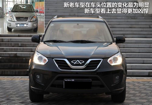 在外觀上,2010款新瑞虎相較2009款車(chē)型還是有一些變化的,這種變化在車(chē)頭方面最為明顯。一眼望去,10款新瑞虎的車(chē)頭整體風(fēng)格十分兇悍且不可一世,我想這句話用在1.6L機(jī)械增壓車(chē)型上面是再合適不過(guò)了。體現(xiàn)兇悍的地方在于大燈以及大嘴的樣式設(shè)計(jì),如果說(shuō)09款車(chē)型看起來(lái)更像是一個(gè)乳臭未干的小孩子的話,那么10款新瑞虎則是一名既瀟灑又有內(nèi)涵的大帥哥。下面就請(qǐng)大家通過(guò)圖片來(lái)仔細(xì)看一看新瑞虎的英姿吧。