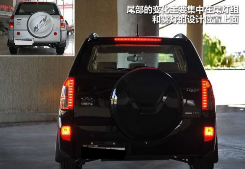 在車(chē)尾部,新款與老款最大的區(qū)別主要體現(xiàn)在尾燈組和霧燈的設(shè)計(jì)樣式上面,而這里面最為明顯的差異就是LED技術(shù)的運(yùn)用了,LED燈本身的亮度就要比普通燈泡強(qiáng)很多,在加之設(shè)計(jì)師出色的神來(lái)之筆,最終我們能夠在新瑞虎的尾部看到一個(gè)設(shè)計(jì)形狀及樣式均十分漂亮的尾燈組造型。與此同時(shí),10款車(chē)型的后霧燈設(shè)計(jì)位置也由原來(lái)的后備箱尾門(mén)上面轉(zhuǎn)移到了尾柱上。