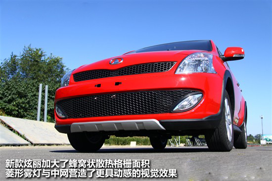 改款后的炫麗增大了蜂窩狀散熱格柵面積,菱形霧燈與中網(wǎng)營造了更具動感的視覺效果。雖然炫麗2368mm的軸距與競爭車型相比并不占優(yōu)勢,但平直的車頂使得炫麗整體看上去非常飽滿。