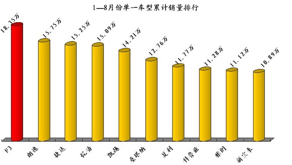 7月,比亞迪汽車第100萬(wàn)輛下線,成為中國(guó)最快速度突破百萬(wàn)輛的企業(yè)。而其旗下車型F3,也于近日突破70萬(wàn)銷售大關(guān),并以19.34萬(wàn)輛的成績(jī)榮膺2010年1-8月份單一車型累計(jì)銷量冠軍。在“金九銀十”傳統(tǒng)旺季到來之際,比亞迪發(fā)起了“百萬(wàn)攻勢(shì),鉅惠萬(wàn)元”活動(dòng),F(xiàn)3新白金版最高降幅達(dá)到萬(wàn)元。F3以其最經(jīng)典外觀、最寬適空間、最經(jīng)濟(jì)油耗、最強(qiáng)勁動(dòng)力、最靈活操控、最豐富配置、最穩(wěn)定品質(zhì)的“七宗最”,成為70萬(wàn)車主共同的選擇。