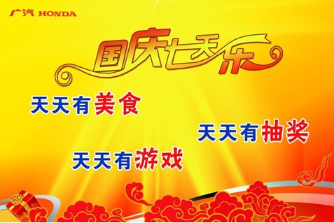 剛剛結(jié)束全家團(tuán)圓的中秋,又迎來十一國慶。大多數(shù)的有車一族會選擇在此時結(jié)伴出游或全家出游,輕松享受愜意的假期。準(zhǔn)有車一族們更會盯住這個大好時機(jī),到車市選購心怡的好車,黃金周期間,為答謝廣大客戶對恒安本田的支持與厚愛,特舉辦國慶七天樂活動,時間從10月1日至10月7日,新的一輪促銷風(fēng)暴即將來臨。