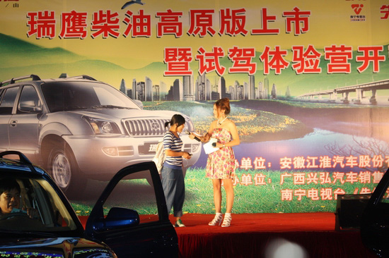10月15日晚,柴油瑞鷹高原版新車上市儀式在萬達(dá)廣場隆重舉行;顒又鬓k方廣西興弘汽車介紹,此次上市的柴油瑞鷹高原版,是江淮汽車與雷默動力系統(tǒng)有限公司再次合作推出的升級產(chǎn)品,實現(xiàn)了更出色的動力性能和節(jié)油表現(xiàn)。