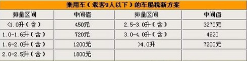2010年10月15日,國稅總局網(wǎng)站透露消息,國車船稅新政策將分為7個梯度按照排量進行征稅,與現(xiàn)行政策相比,排量在1.0升及以下的乘用車稅負減輕,大排量乘用車稅負則大幅增加。
