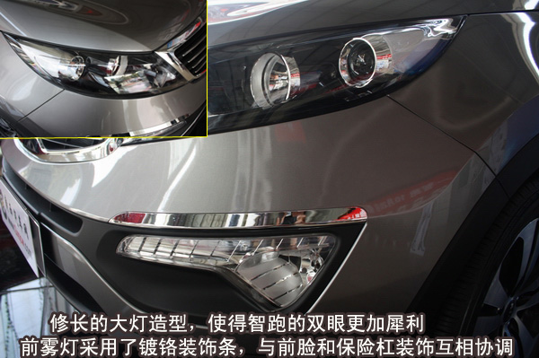東風(fēng)悅達(dá)起亞智跑的前臉設(shè)計(jì)采用了全新起亞家族臉譜,與進(jìn)口起亞的新索蘭托十分相似。家族式的前臉造型顯得更加夸張,同時(shí)配合大量鍍鉻的應(yīng)用,整體更顯檔次。