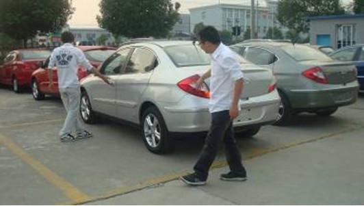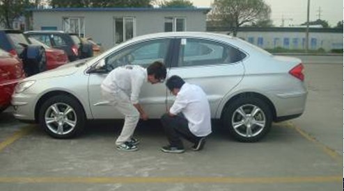 在銷售人員的帶領(lǐng)下,我們見到了屬于我的小三,一身銀裝的她靜靜等待著我們的到來,當(dāng)我手握鑰匙親自啟動(dòng),那一剎激動(dòng)的心情簡(jiǎn)直難以形容。在朋友的協(xié)助下,我開始謹(jǐn)慎驗(yàn)車。新車已經(jīng)清洗得非常干凈,更加襯托出小三的時(shí)尚外觀,動(dòng)感十足。仔細(xì)檢查了全車外觀,車門縫隙比較均衡,做工非常精致,玻璃下角也有原配的標(biāo)記。