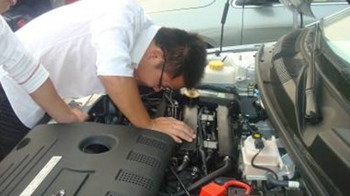 緊接著便輪到小三的“心臟”來接受考驗(yàn)了。提車寶典中提示的方法是再找一輛車來同時(shí)打著,人站在兩車中間位置比較它們的發(fā)動(dòng)機(jī)聲音,聲音大的被淘汰。在實(shí)際操作時(shí),我與朋友都沒有明顯分辨出兩輛A3的發(fā)動(dòng)機(jī)優(yōu)劣,不知道是我們不懂行還是因?yàn)樾∪谋憩F(xiàn)比較穩(wěn)定。不過,當(dāng)我們用螺絲刀一端頂在發(fā)動(dòng)機(jī)上,另一端頂在耳朵上細(xì)聽發(fā)動(dòng)機(jī)聲音時(shí),小三的表現(xiàn)值得稱贊,發(fā)動(dòng)機(jī)呈現(xiàn)出比較純粹的“呼嚕呼!甭暎瑳]有任何雜音。