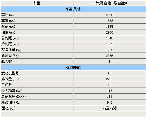 一汽馬自達(dá)投產(chǎn)的馬自達(dá)8車型將配備2.3L升發(fā)動機(jī),采用前置前驅(qū)的驅(qū)動方式。從上表我們可以看出,馬自達(dá)8雖說屬于大型MPV車型,但也完全符 合日系車經(jīng)濟(jì)省油的特點(diǎn),經(jīng)濟(jì)油耗僅為9.8L。馬自達(dá)8還有最大的一個(gè)優(yōu)點(diǎn)是,它的承載人數(shù)達(dá)到了8人,相對于其它MPV車型承載人數(shù)7人來說要方便很 多。