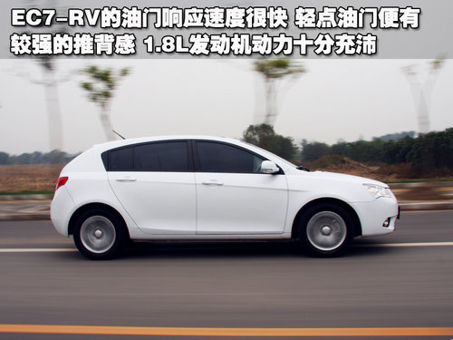 帝豪EC7-RV的油門響應(yīng)速度很快,只需輕點油門,駕駛者便可以很直接的感受到較強的推背感。這與它配備的1.8L發(fā)動機密不可分,這臺發(fā)動機可以為使用者提供102kw的最大功率輸出,以及172Nm的峰值扭矩輸出,對于僅有1266kg的車身重量來說絕對夠用。