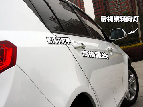 帝豪EC7-RV側(cè)身線(xiàn)條被一條逐漸提升的高挑腰線(xiàn)貫穿,取消了車(chē)身防擦條后,帝豪EC7-RV的側(cè)面看起來(lái)更流暢,不過(guò)遇到剮蹭時(shí)需要修復(fù)的工程也會(huì)大很多。全系車(chē)型均配備了彰顯豪華的鍍鉻門(mén)把手裝飾條,為車(chē)身側(cè)面提升了一絲質(zhì)感。在可電動(dòng)調(diào)節(jié)后視鏡上,我們還發(fā)現(xiàn)了極為實(shí)用的安全性配置,后視鏡LED轉(zhuǎn)向燈。
