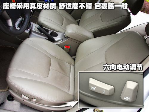 帝豪EC7-RV的座椅采用真皮材質(zhì),舒適度不錯(cuò),包裹感一般。主駕座椅還為駕駛者提供了6向電動(dòng)調(diào)節(jié)功能,在同價(jià)位車(chē)型當(dāng)中比較少見(jiàn)。在2650mm軸距的保障下,帝豪EC7-RV的后排乘坐空間也得到了比較全面的保障。后排座椅配備了中央扶手箱,內(nèi)部設(shè)有兩個(gè)杯架。