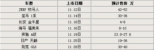 在11月的時間里售價在4-6萬元左右的長安金牛星是一款亦農(nóng)亦商的車型,長安在微車領域也擁有完善的銷售和售后服務體系,在同級別同價位車型中還是非常值得期待的。其他車型方面奔馳目前引進在中國市場價位最低的轎車,但是奔馳A級依然是同級別中售價最高的一款。上海通用在國內(nèi)中端MPV中憑借GL8的表現(xiàn)一直是無冕之王,11月底別克全新GL8將會上市憑借多年以來積累的口碑,全新GL8想不大賣恐怕都難啊。