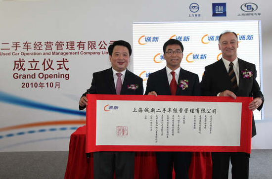 2010年10月28日 由上海汽車工業(yè)銷售有限公司、通用汽車(中國(guó))投資有限公司與上海通用汽車有限公司共同投資創(chuàng)建的“上海誠(chéng)新二手車經(jīng)營(yíng)管理有限公司”正式宣布成立,投資比例分別為34%、33%和33%,這也是國(guó)內(nèi)成立的首家品牌二手車合資公司。上海汽車工業(yè)銷售有限公司董事長(zhǎng)葉永明、通用汽車(中國(guó))公司總裁兼總經(jīng)理甘文維和上海通用汽車總經(jīng)理丁磊出席了成立儀式。