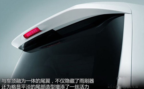 牌照框上下各有鍍鉻飾條妝點(diǎn),兩側(cè)設(shè)置的白色燈組也是日系車(chē)型的慣用手法。雨刷器影藏在與車(chē)頂融為一體的大型尾翼當(dāng)中,簡(jiǎn)潔實(shí)用的造型結(jié)合V字形的尾門(mén),為略顯平淡的尾部造型增添了一絲活力。