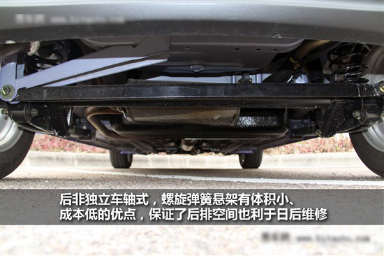 奔奔MINI前麥弗遜式獨(dú)立懸架配備了平衡桿,有助于增強(qiáng)懸架的剛性。后非獨(dú)立車軸式,螺旋彈簧懸架有體積小、成本低的優(yōu)點(diǎn),保證了后排空間也利于日后維修。只是舒適性方便比較遜色,但偏軟的調(diào)校讓這一劣勢并不明顯。