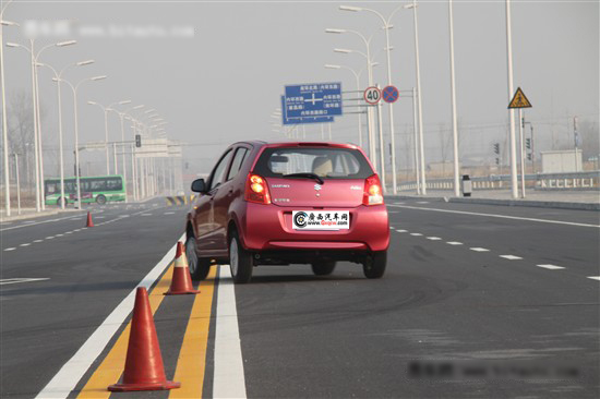 繞樁姿態(tài)新奧拓明顯要優(yōu)于奔奔MINI,雖然說車身側(cè)傾沒有那么夸張,但原廠155/65/R14的錦湖輪胎讓人在心理上會產(chǎn)生些許不安,針對輪胎的抓地力問題,只能說日常駕駛夠用,在作變線及其它一些應(yīng)急處理的時候輪胎未必能提供足夠的抓地力。