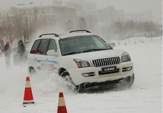 活動(dòng)開(kāi)始后,帶隊(duì)車(chē)王王東江及車(chē)隊(duì)成員駕駛?cè)珪r(shí)四驅(qū)瑞鷹為現(xiàn)場(chǎng)嘉賓帶來(lái)了精彩的雪地雙車(chē)表演。和普通路面不同,冰雪場(chǎng)地不但對(duì)駕駛員在車(chē)輛起步、加速、換道、變擋時(shí)的操作提出了很高的要求,而且對(duì)于車(chē)輛的穩(wěn)定性和安全性也是嚴(yán)峻的考驗(yàn)。在王東江的率領(lǐng)下,隊(duì)員們以近乎完美的表演贏得眾多車(chē)友的喝彩。