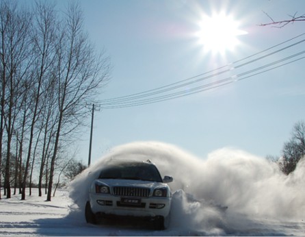 當(dāng)日活動(dòng)最為驚險(xiǎn)的路段,當(dāng)屬一處有較厚積雪且坡度較大的下坡路段,這不僅要求車輛有良好的抓地性能,還要有很高的可通過(guò)性。瑞鷹采用的是前麥弗遜式獨(dú)立懸架,降低了發(fā)動(dòng)機(jī)高度,整車重心高度降低,從而提高了車輛行駛的平順性和穩(wěn)定性。后懸架則采用了雙叉臂,雙向作用筒式減震器的獨(dú)立懸架,有效提高車輛舒適性的同時(shí),大大提高了車輛的通過(guò)性。 瑞鷹的接近角和離去角也分別達(dá)到了27度和24度,達(dá)到了悍馬H2的水平,幾乎可以在任何坡度上輕松啟動(dòng)和駕馭。