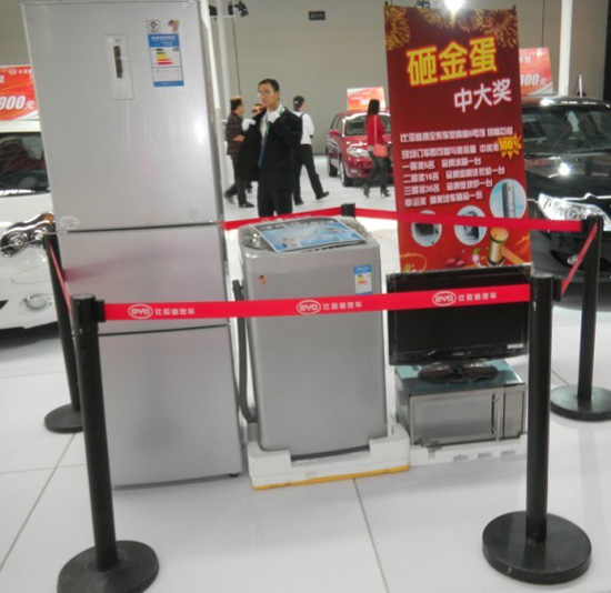(廣西汽車網(wǎng) 訊)廣西汽車網(wǎng)編輯從比亞迪廣西宏柳銷售店了解到,在廣西宏柳汽車有限公司盛大開業(yè)慶典之際,第三屆南寧國(guó)際車展現(xiàn)場(chǎng)比亞迪FO/F3R再送四重大驚喜,購比亞迪FO/F3R除享受國(guó)家節(jié)能補(bǔ)貼3000元外,現(xiàn)場(chǎng)購車還可享受5000元超值大禮包和價(jià)值3980元的鉆戒,同時(shí)還可參與現(xiàn)場(chǎng)抽獎(jiǎng)活動(dòng),中獎(jiǎng)率為百分百,雙重中獎(jiǎng),機(jī)會(huì)千載難逢,不容錯(cuò)過!A14展位比亞迪廣西宏柳歡迎您的光臨!具體如下: