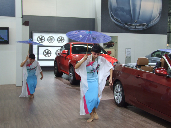 在喧囂的車展中,一曲江南水鄉(xiāng)安靜如小橋流水人家的舞蹈,也成功的吸引了許多人的腳步,舞蹈優(yōu)美,音樂猶如安靜雨聲,讓人忘記了是否還在車展中。