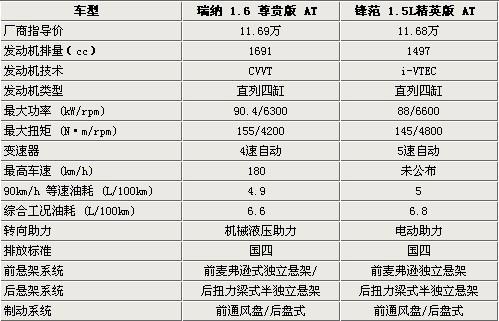 瑞納與鋒范均采用了直列四缸發(fā)動機,不過在排量方面這兩款車略有區(qū)別,因此在最大功率及最大扭矩方面具有一定的差別。鋒范的轉(zhuǎn)向系統(tǒng)配備了電子助力,較瑞納的機械液壓式更為先進(jìn),而且這款車搭載了5速自動變速箱,換擋時更加平順,有效了提高乘坐上的舒適性。由于鋒范在車身重量上比瑞納重了83公斤,所以在油耗方面表現(xiàn)稍顯遜色。兩車在底盤與剎車的配置方面完全相同,半獨立后懸掛在這個價位合資車中還算可以接受,前后盤剎的配置可以有效提升駕駛安全性。