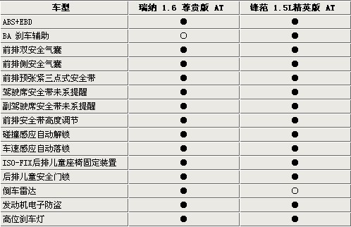 在主動安全性方面,瑞納和鋒范都配備了ABS+EBD等電子系統(tǒng),不過鋒范還配備了BA剎車輔助系統(tǒng),可以看出鋒范這在一環(huán)節(jié)中更加注重人員的駕乘安全性。在被動安全方面,這兩款車都配備了6個安全氣囊,保證了消費者在出現(xiàn)意外時的安全性。瑞納較鋒范多裝配了倒車?yán)走_(dá)一項實用的安全配置,在倒車時也更加的方便。在其余的配置方面,如防盜、遙控鑰匙、中控鎖等均為兩車共同擁有的配置。