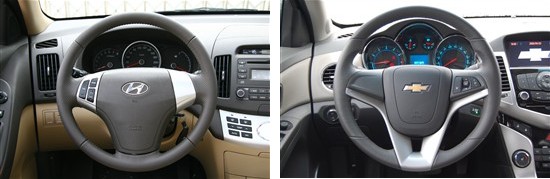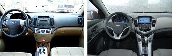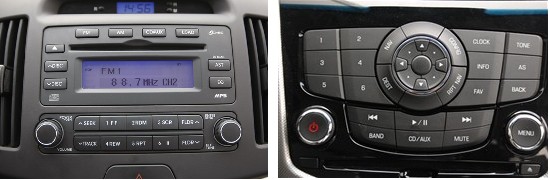 內(nèi)飾方面的差異再次顯出了兩款車的定位不同。悅動(dòng)采用了黑色和米色的內(nèi)飾搭配,整體更顯家庭般的溫馨;科魯茲則由黑、灰和銀三色搭配,整個(gè)內(nèi)飾更加時(shí)尚運(yùn)動(dòng)。