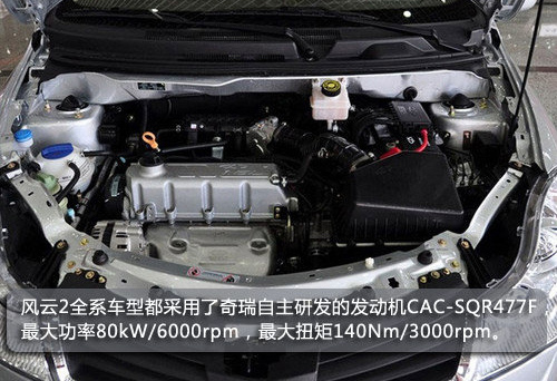 目前風云2全系均搭載代號為ACTECO-SQR477F的1.5L四缸16氣門發(fā)動機,最大功率80kW(109馬力)/6000rpm,最大扭矩140Nm/3000rpm,從數(shù)據(jù)上看相比同排量對手還是頗有競爭力的。