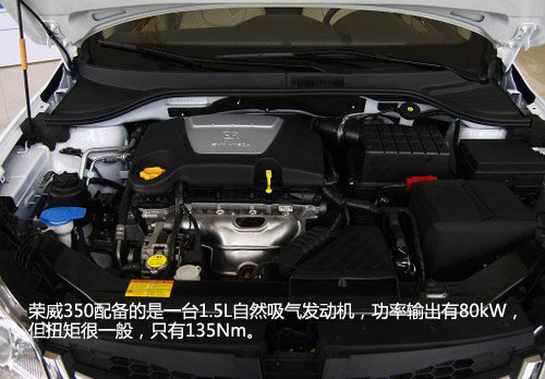榮威350配備的是一臺(tái)1.5L自然吸氣發(fā)動(dòng)機(jī),功率輸出有80kW,但扭矩很一般,只有135Nm?梢钥闯觯@是一款偏重功率調(diào)校的機(jī)型。在國(guó)內(nèi)車市,與榮威350處于同一級(jí)次的車型很少采用1.5L發(fā)動(dòng)機(jī),因此在參數(shù)對(duì)比這一塊,榮威350有點(diǎn)吃虧。功率還過(guò)得去,但扭矩會(huì)輸給很多對(duì)手。