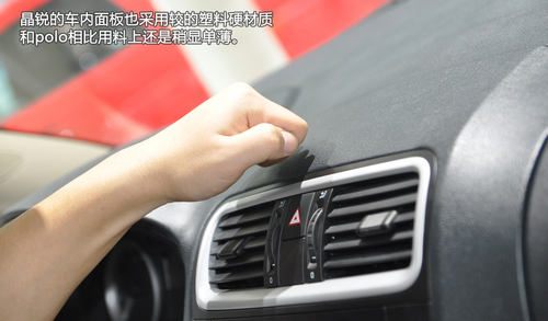 另外,polo的中控臺(tái)面板部件是硬塑料材質(zhì),但是厚度和細(xì)節(jié)工藝都很不錯(cuò)。而晶銳的中控面板也采用較的塑料硬材質(zhì)和新polo相比用料上還是稍顯單薄。