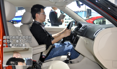 而晶銳的前排座在舒適性方面也還不錯(cuò),腰部的支撐很到位,但是說到包裹性上與新polo相比就要差一些了。而同樣的體驗(yàn)者坐進(jìn)去,頭部空間很充裕,基本上可以有一拳半的余量。明顯比新polo大不少。